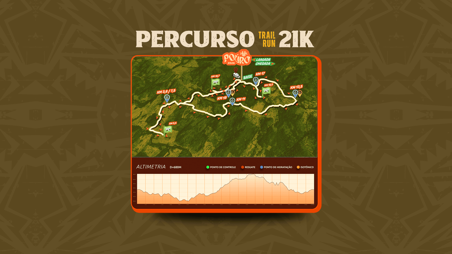 Distância: 21K Desnível positivo: 680 m